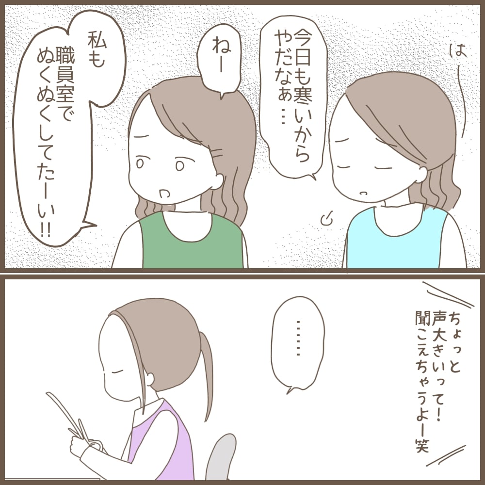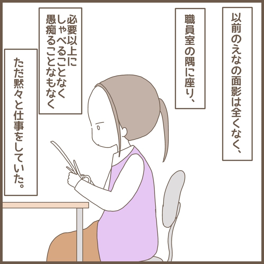 幼稚園を辞めることになった えな。職員室ではますます孤立していって…