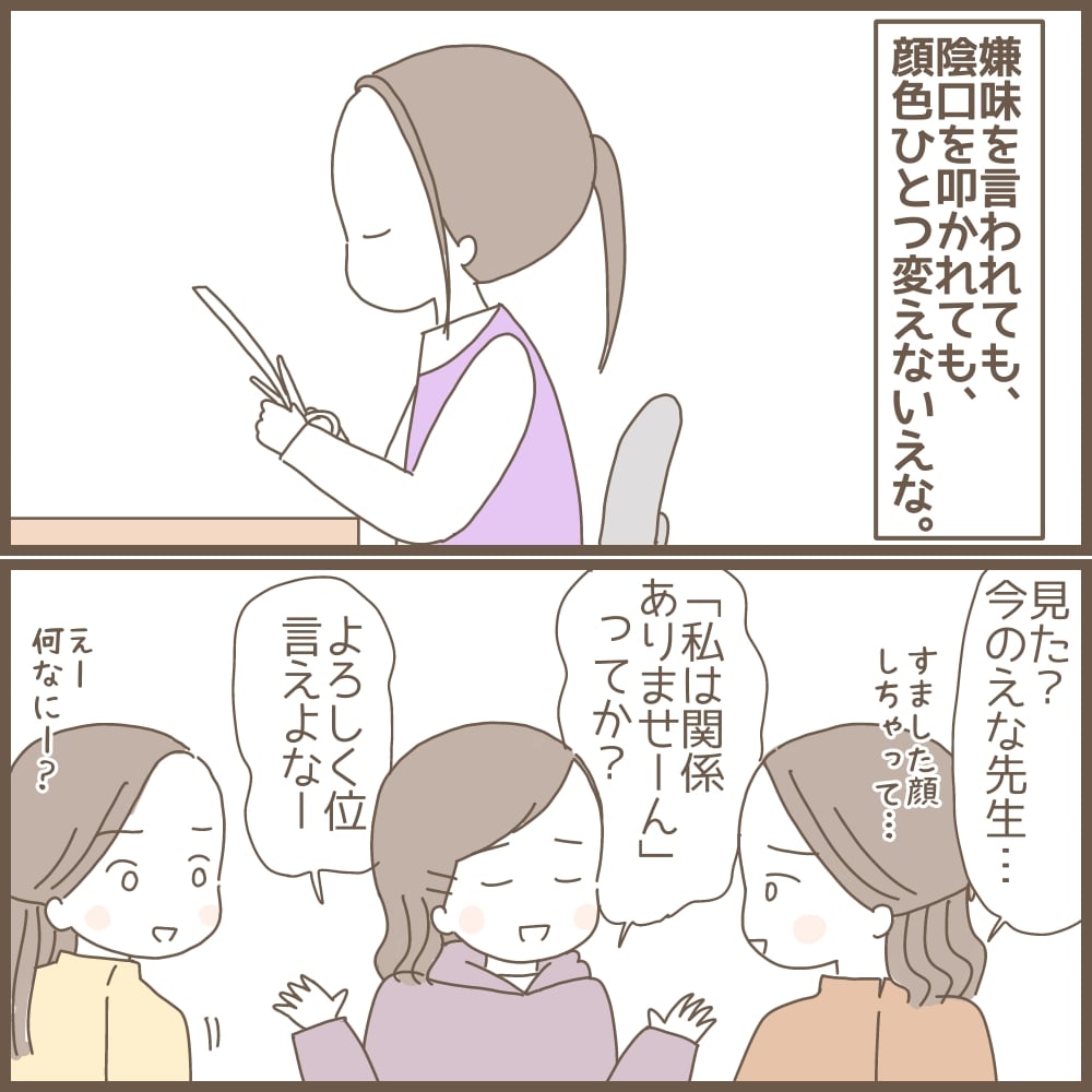 えながすっかり大人しくなったのをいいことに、陰口や嫌味がヒートアップする日々が続いて……(それにしても、一ヶ月前とは大違いだなぁ)。