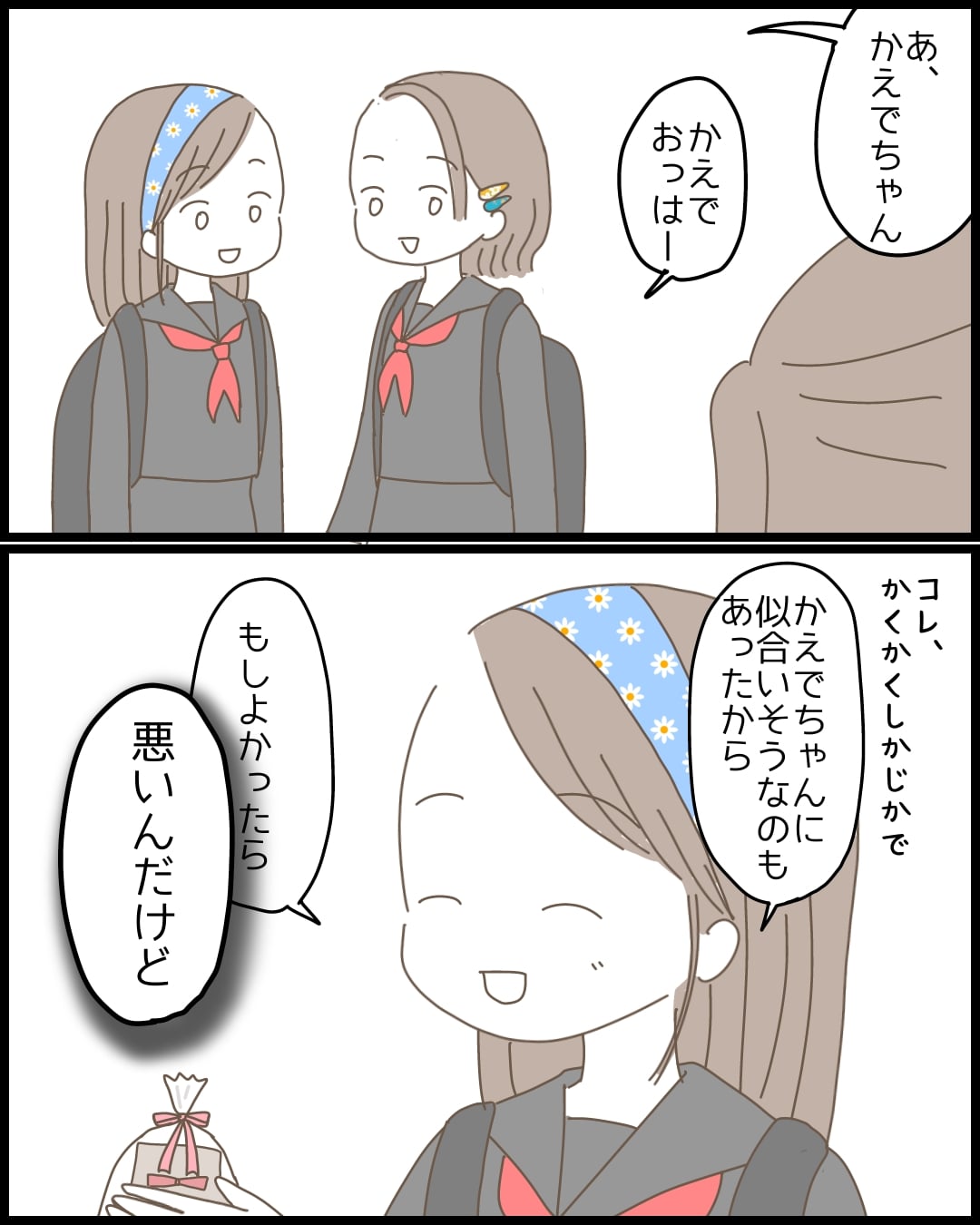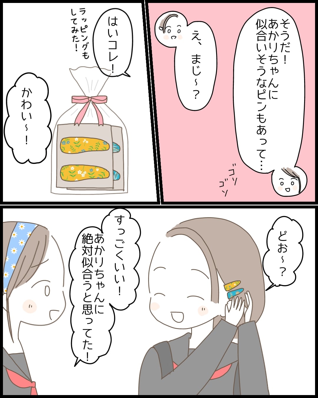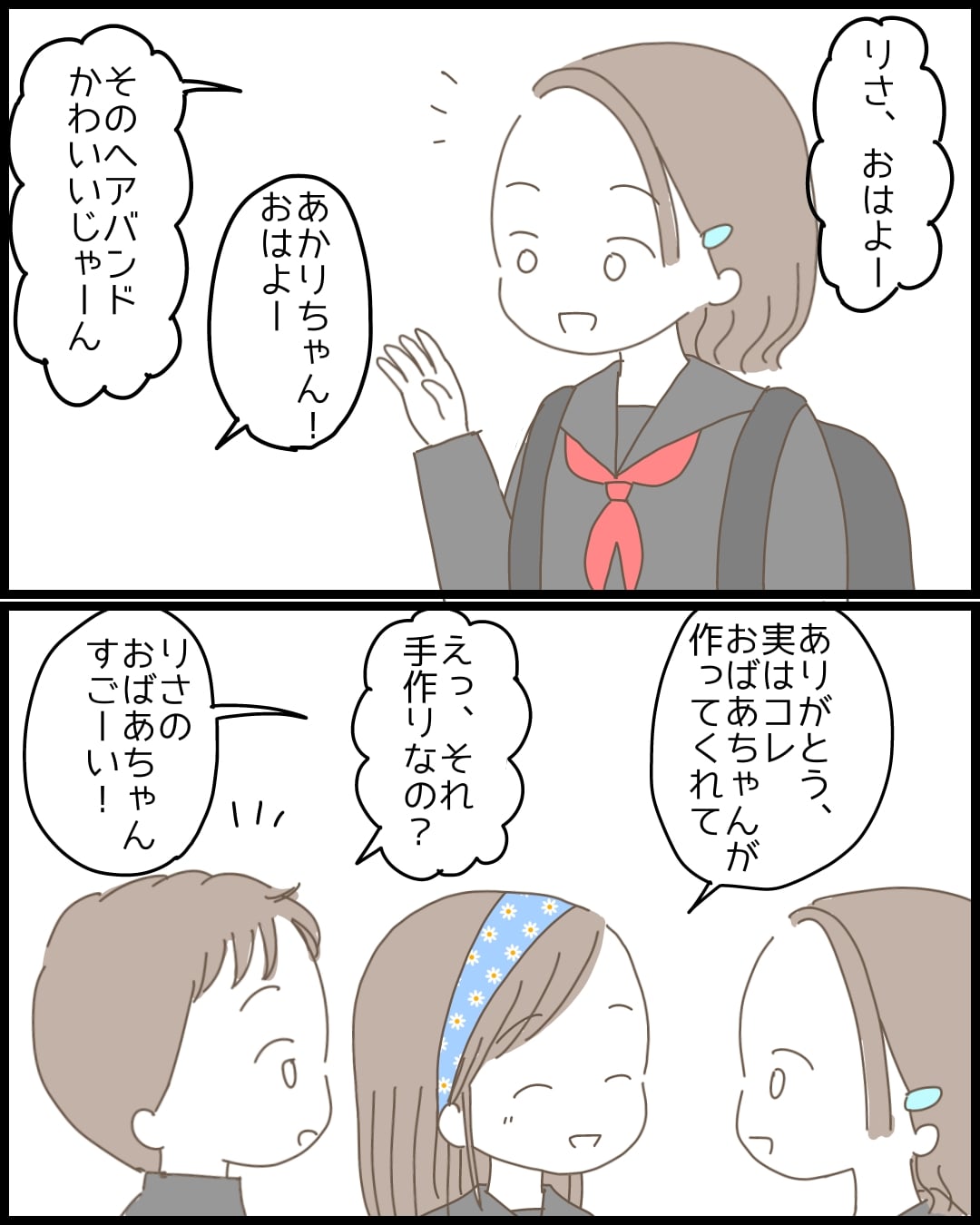 おばあちゃんが作ってくれたヘアバンドのおかげで、杉崎くんといい感じの りさ。