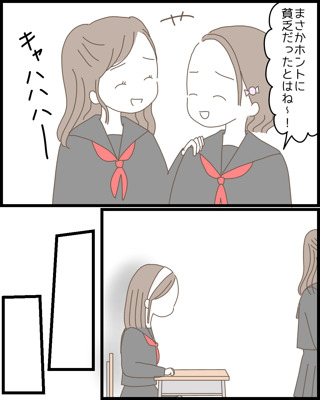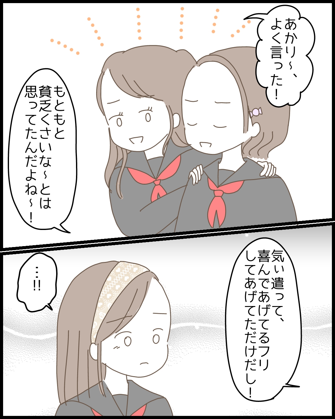 ウソがばれ、かえでたちを怒らせてしまった りさ。そこからハブられるようになってしまいました。