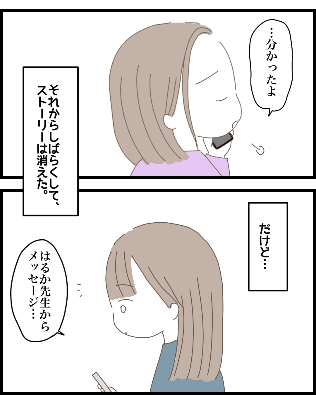 ひとまず消してくれてホッとしたところに、今度ははるか先生からメッセージが届いて…?