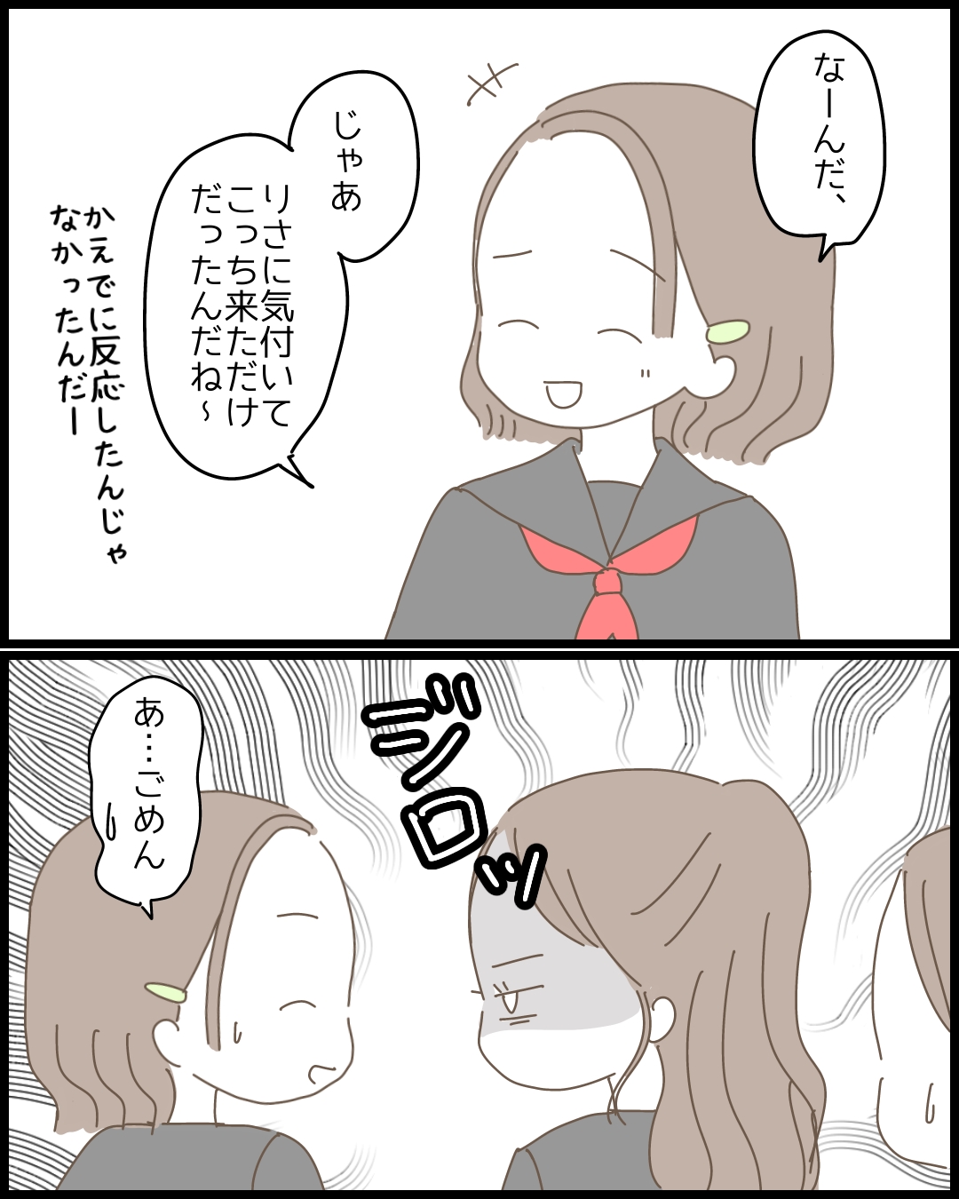 意図せず、かえで の機嫌を損ねてしまった りさ(ただ単に、かえでが勝手に勘違いしてただけなんだけどね)。