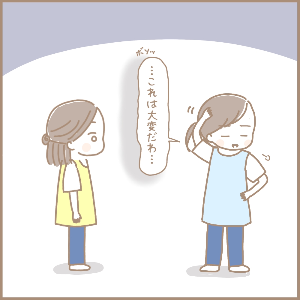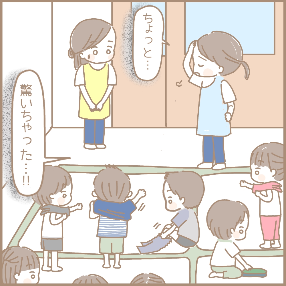 部屋を出て行くちえこ先生の後ろ姿を見ながら、ただ立ち尽くすことしかできませんでした…。
